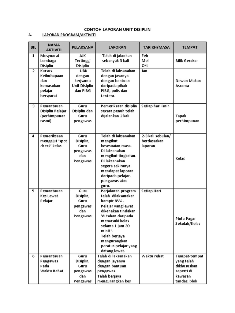 Doc contoh format laporan aktiviti kursus kokurikulum berkredit nur. Dalam praktik pendidikan kita tahu beberapa kegiatan yang menggambarkan sikap disiplin di antaranya.